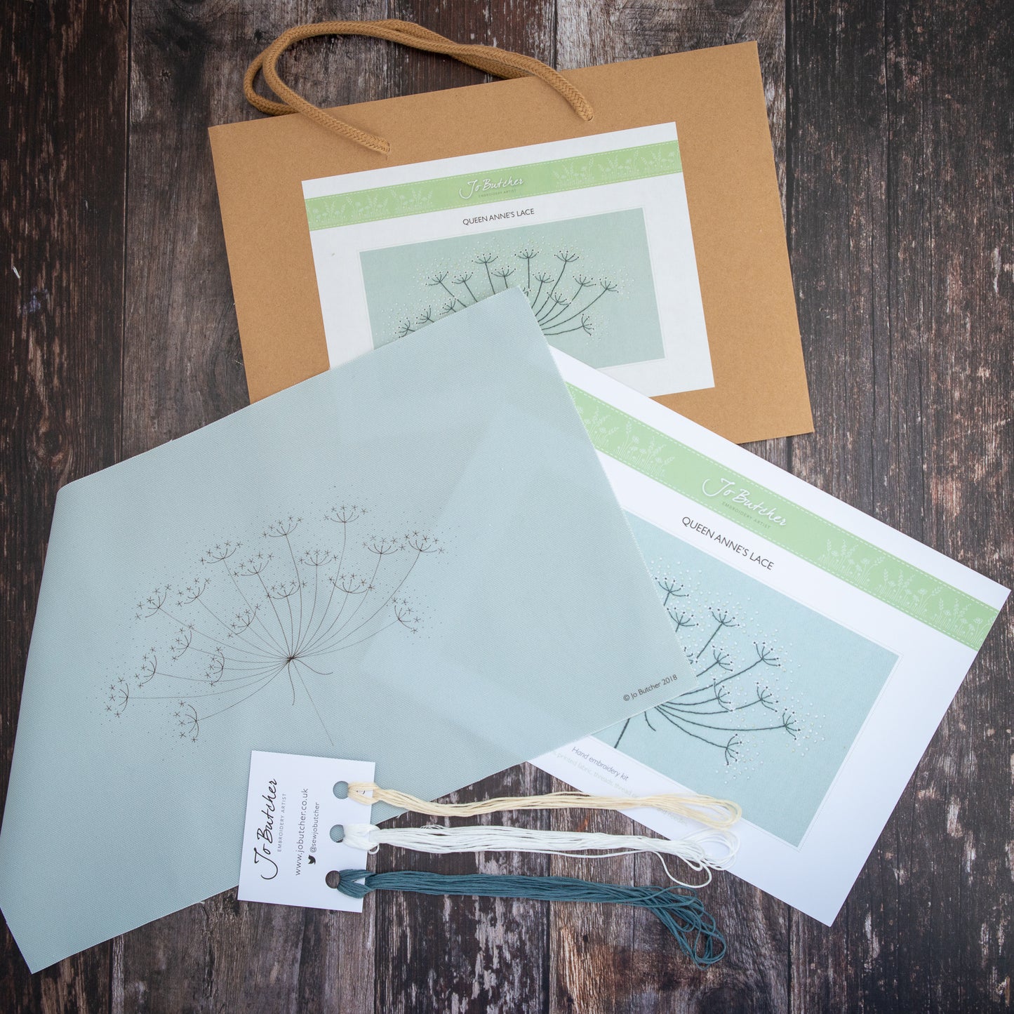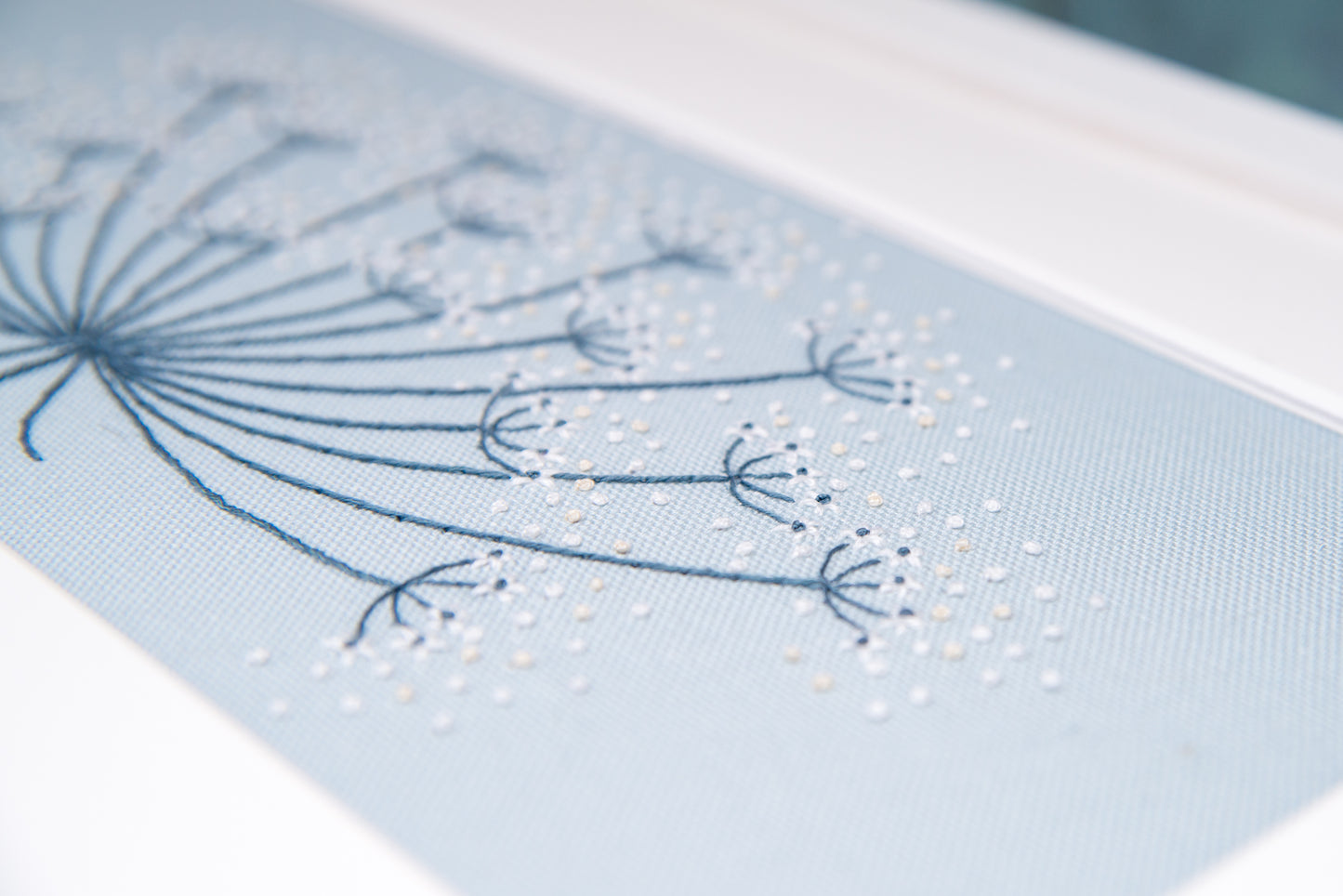 This contemporary seed head is embroidered using three simple stitches on an outline printed cotton background.