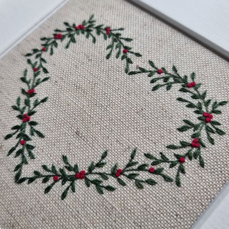 This lovely hand embroidery kit of a winter heart has red leaves and white berries and will look great on the wall once stitched.