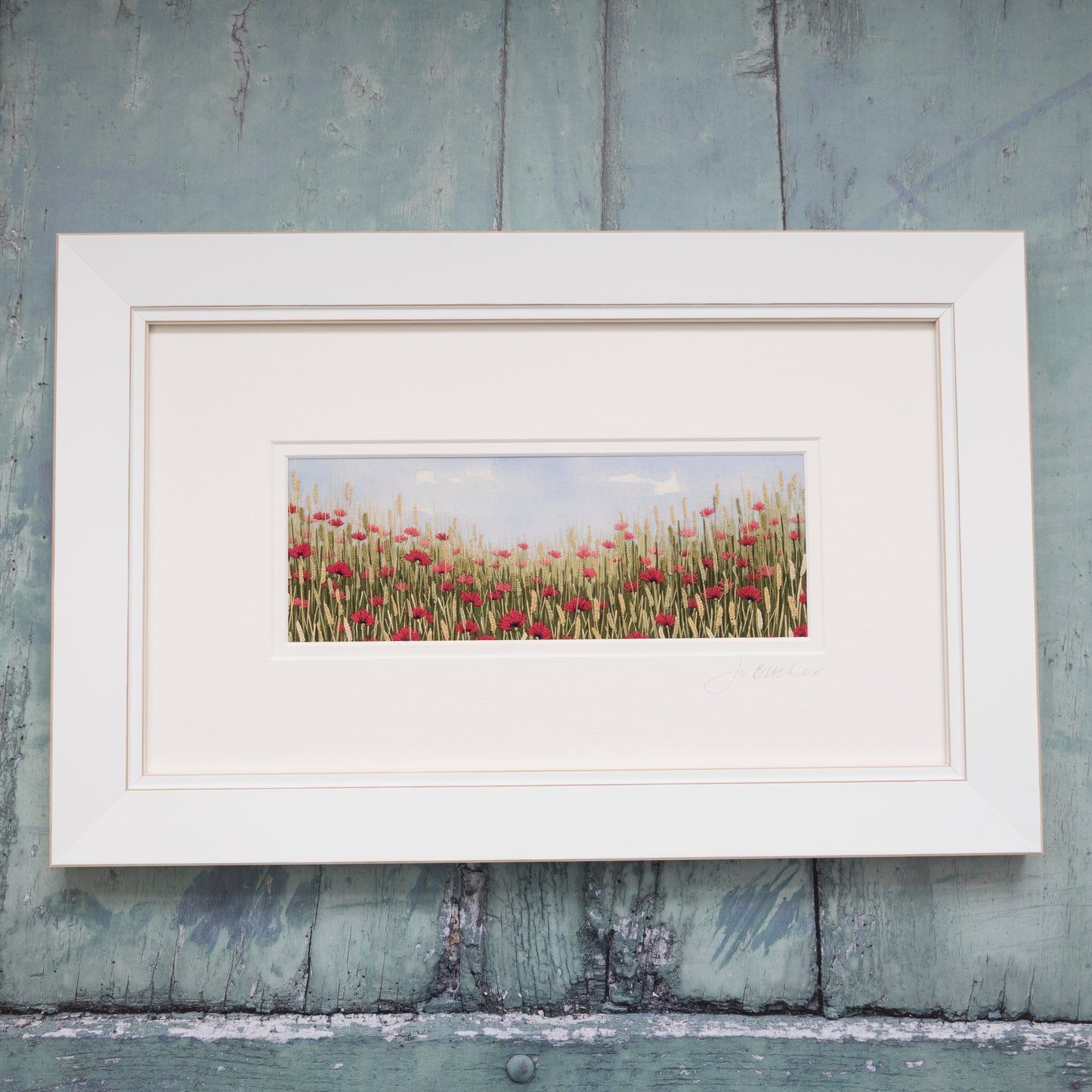 The variation of shading of the poppies within the flowering grasses gives the artwork a real depth and presence.